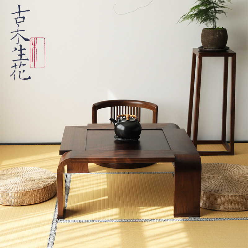 日式茶桌椅全实木榻榻米茶几时尚矮款坐地茶桌地台飘窗桌组合禅意