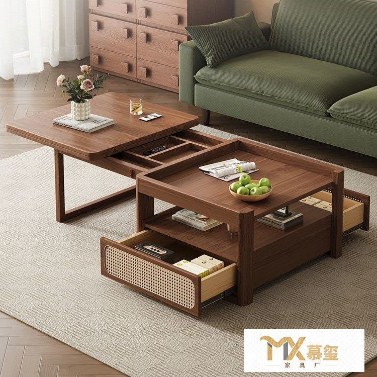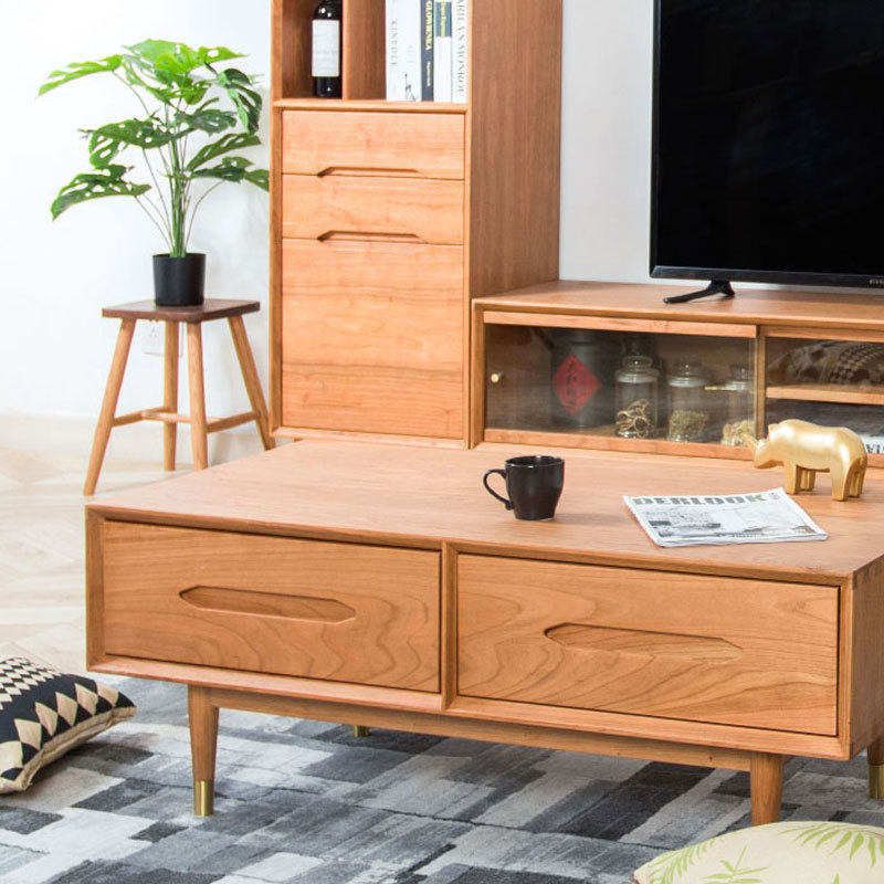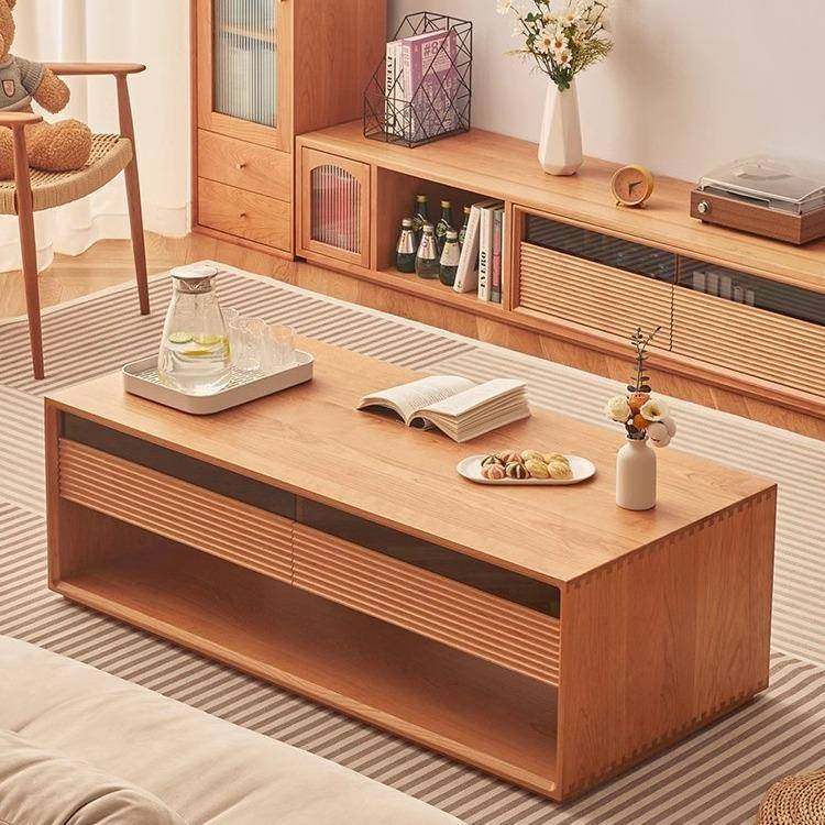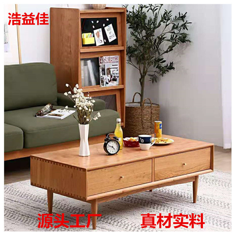 日式简约全实木小户型茶几樱桃木现代北欧客厅长方形带储物半开放