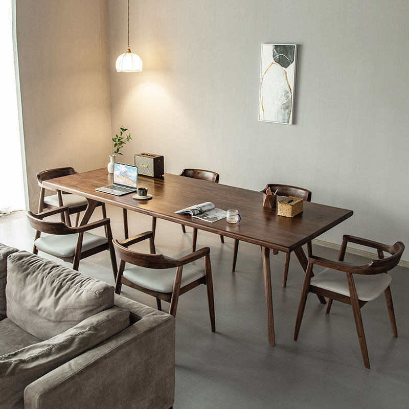 北欧黑胡桃全实木轻奢式餐桌多功能实木茶桌日式极简式加厚会议桌