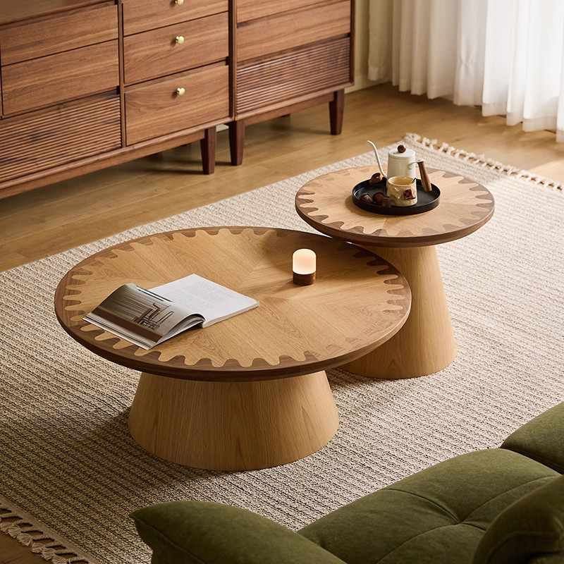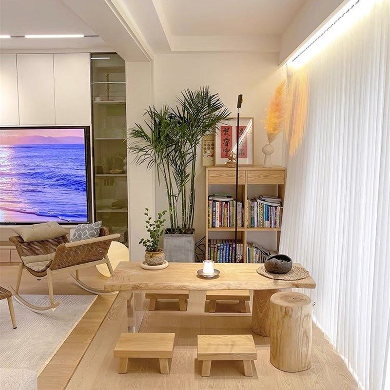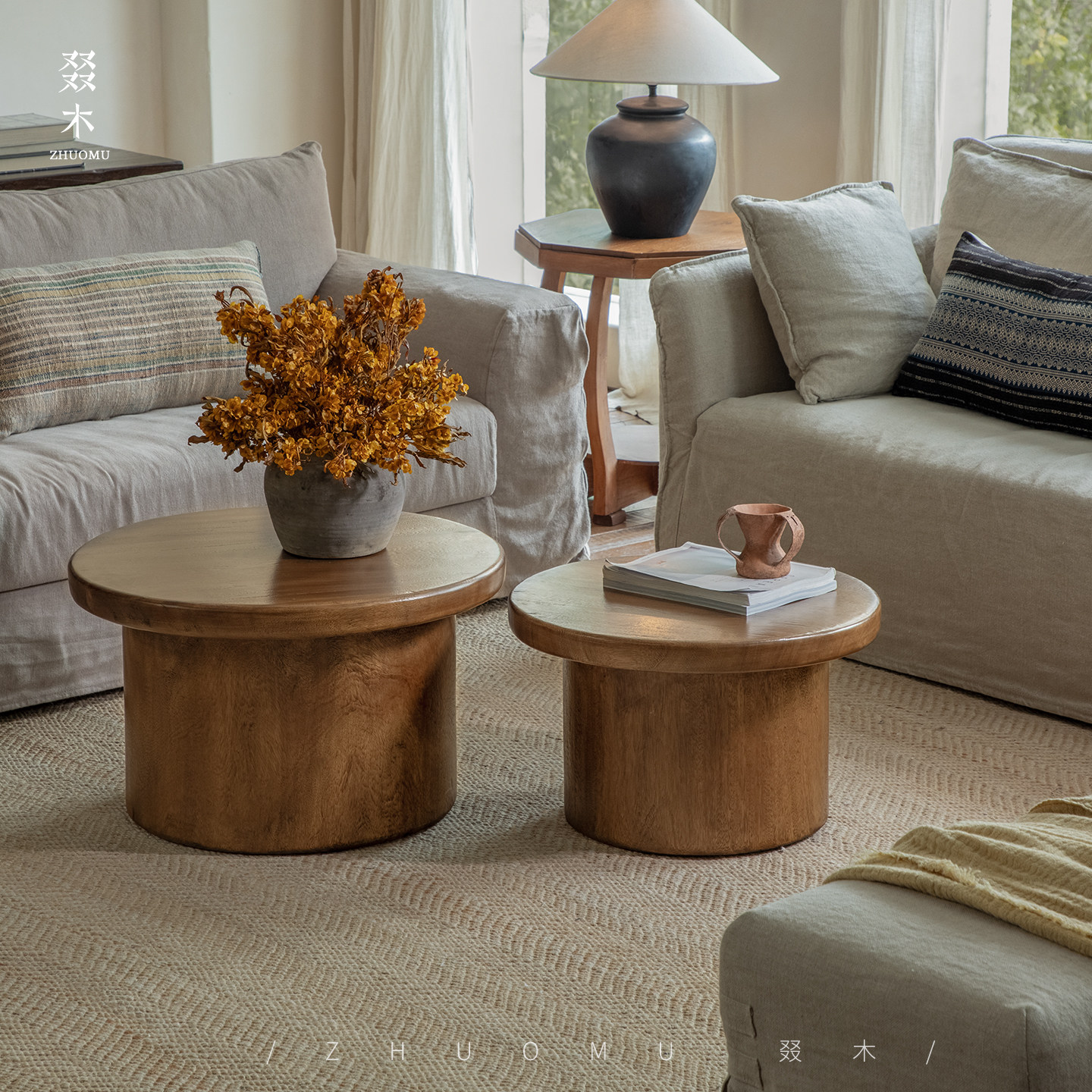 叕木日式侘寂风全实木组合茶几民宿酒店设计师创意榻榻米圆形边几