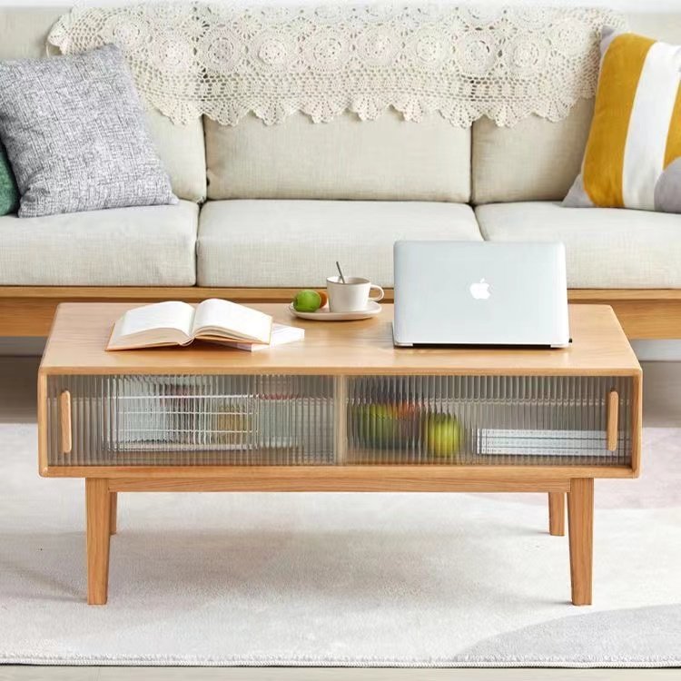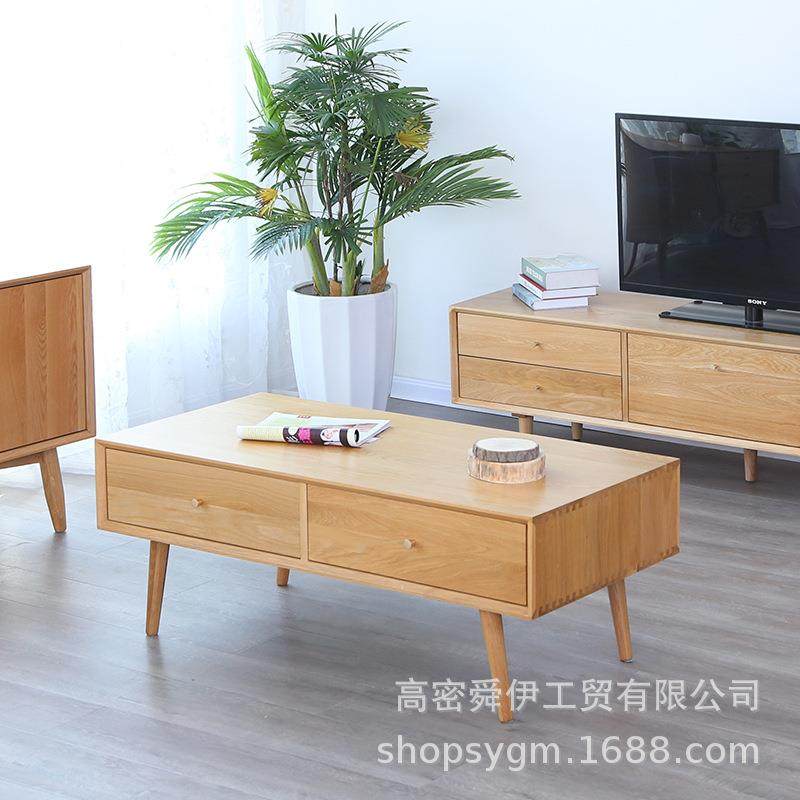 全实木家具茶几简约客厅日式小户型原木色白橡木北欧风格玻璃实木