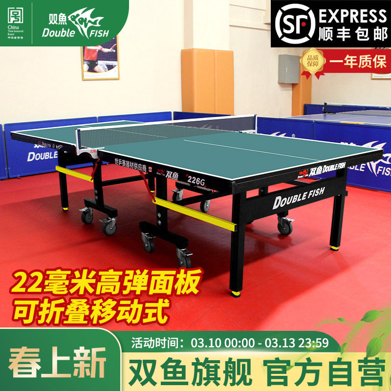 双鱼乒乓球桌折叠家用223A国际标准尺寸专业乒乓球台案子22MM室内