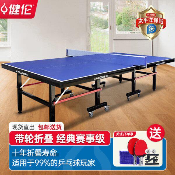 健伦乒乓球桌家用折叠式室内标准带轮可移动式兵乓球台案子302款
