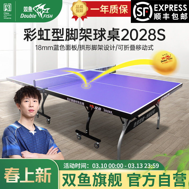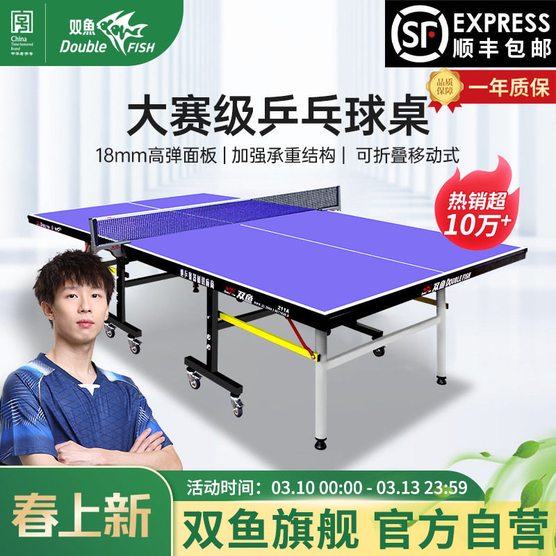 双鱼乒乓球桌旗舰店室内家用可折叠乒乓球台标准红色面板缤彩炫彩