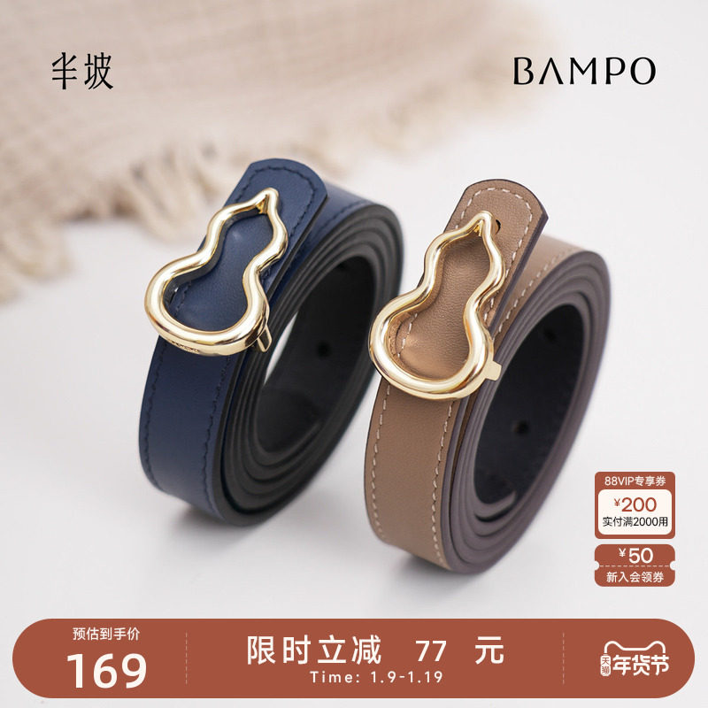 BAMPO半坡头层牛皮葫芦皮带专柜春夏新款原创小众装饰真皮腰带女