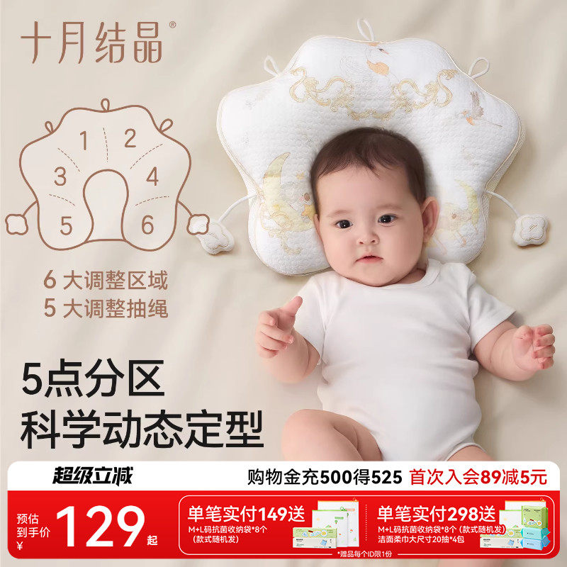 十月结晶婴儿云片枕吸汗透气新生枕头纯棉宝宝云朵枕巾平枕春夏款
