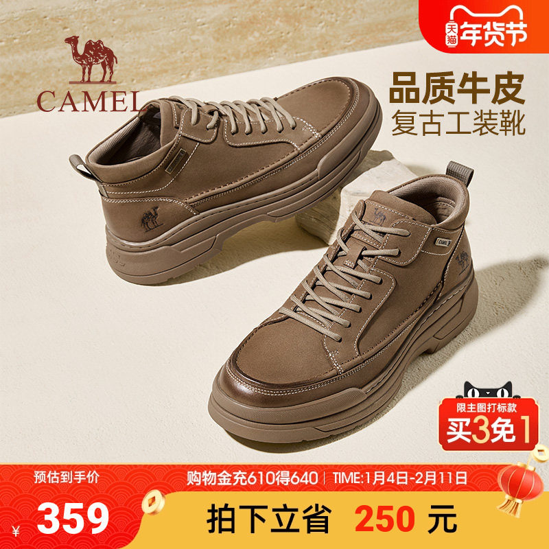 骆驼男鞋2025冬季新款复古磨砂牛皮增高经典城市户外休闲工装靴