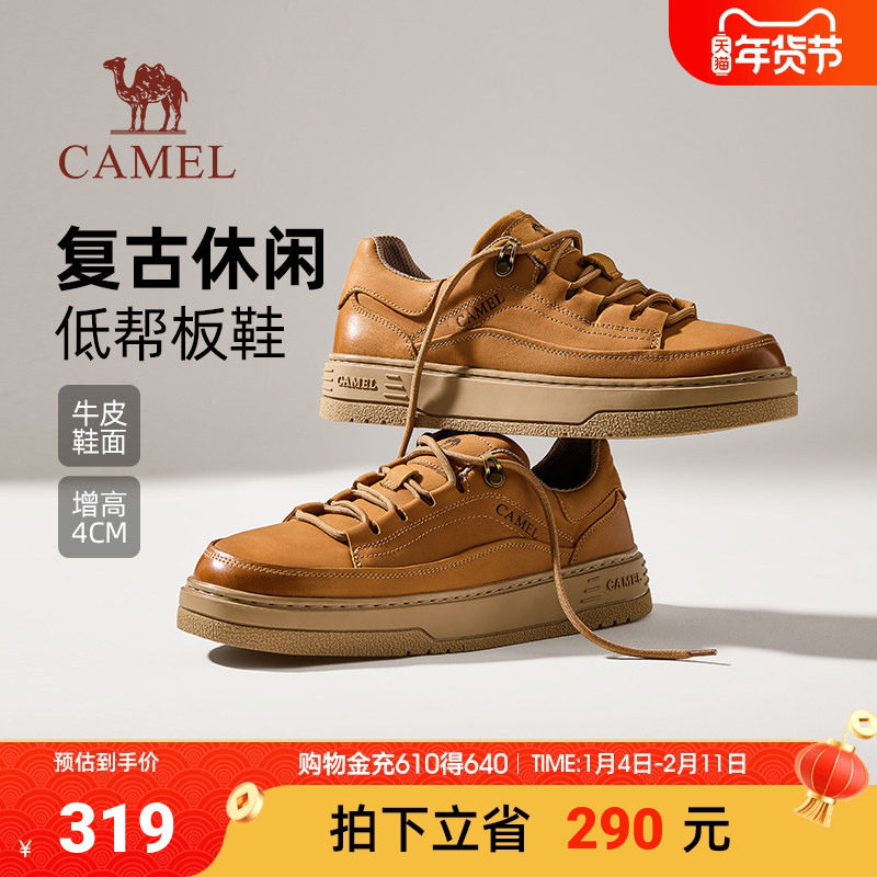 骆驼男鞋2025秋季新款磨砂牛皮舒适增高城市复古休闲低帮板鞋