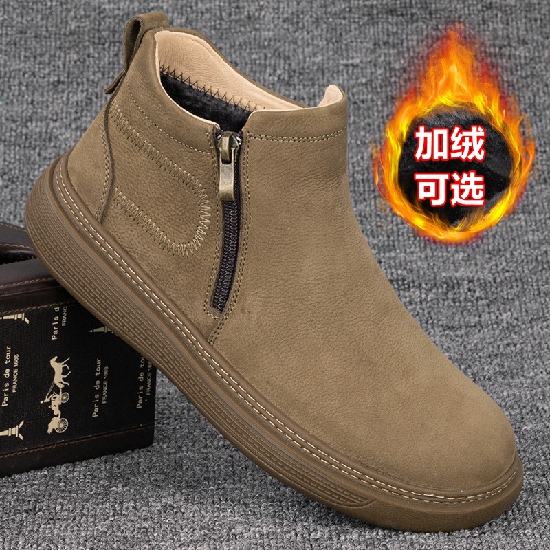 男鞋冬季2025新款高帮鞋加绒翻毛真皮潮鞋磨砂休闲板鞋潮牌马丁靴