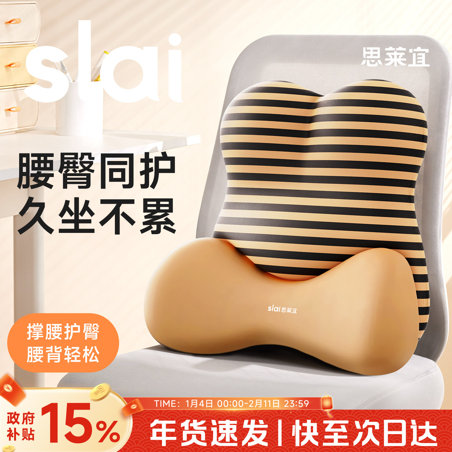 【补贴15%】思莱宜护腰靠垫办公室久坐神器座椅子腰部支撑靠背垫