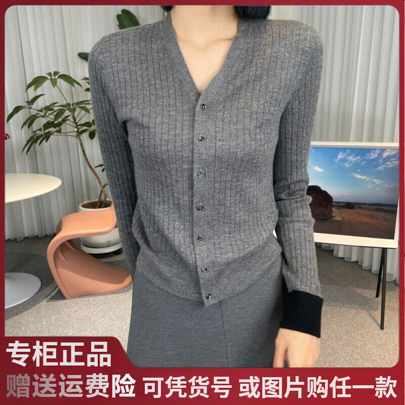 阿玛施2024秋季新款V领修身显瘦山羊绒长袖针织开衫5499266