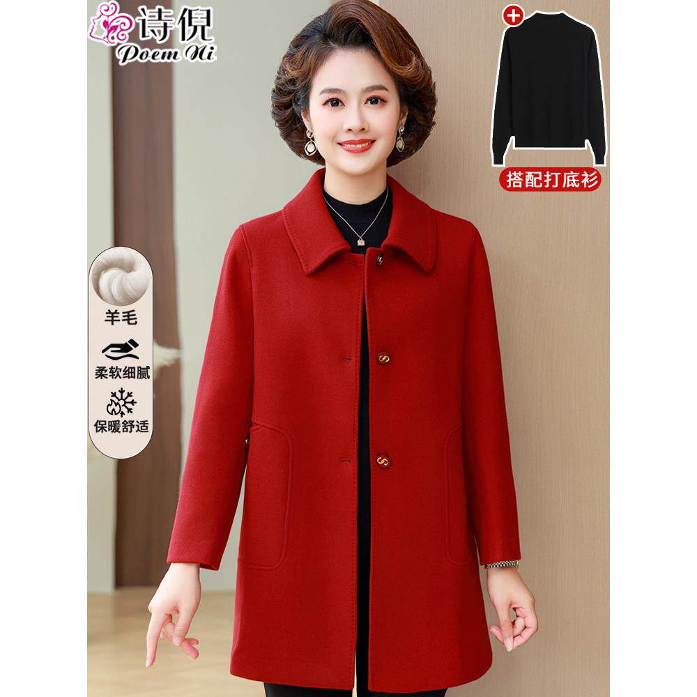 喜婆婆婚宴妈妈洋气双面羊绒大衣中老年女装秋冬款中长款呢子外套
