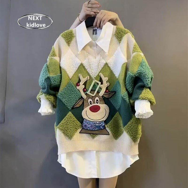 - 女宽松套头针织衫休闲