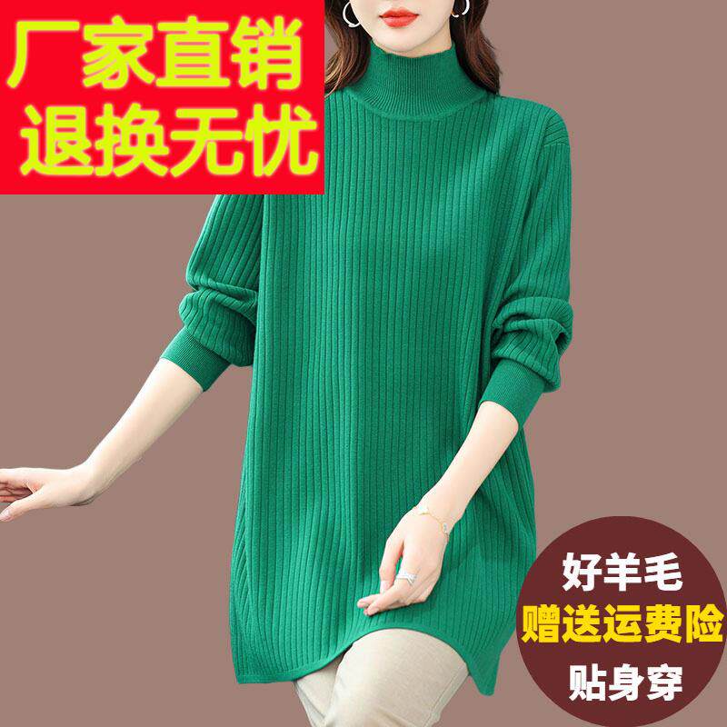 2025秋冬款显瘦中长款毛衣半高领加厚保暖宽松遮肚羊毛打底衫女