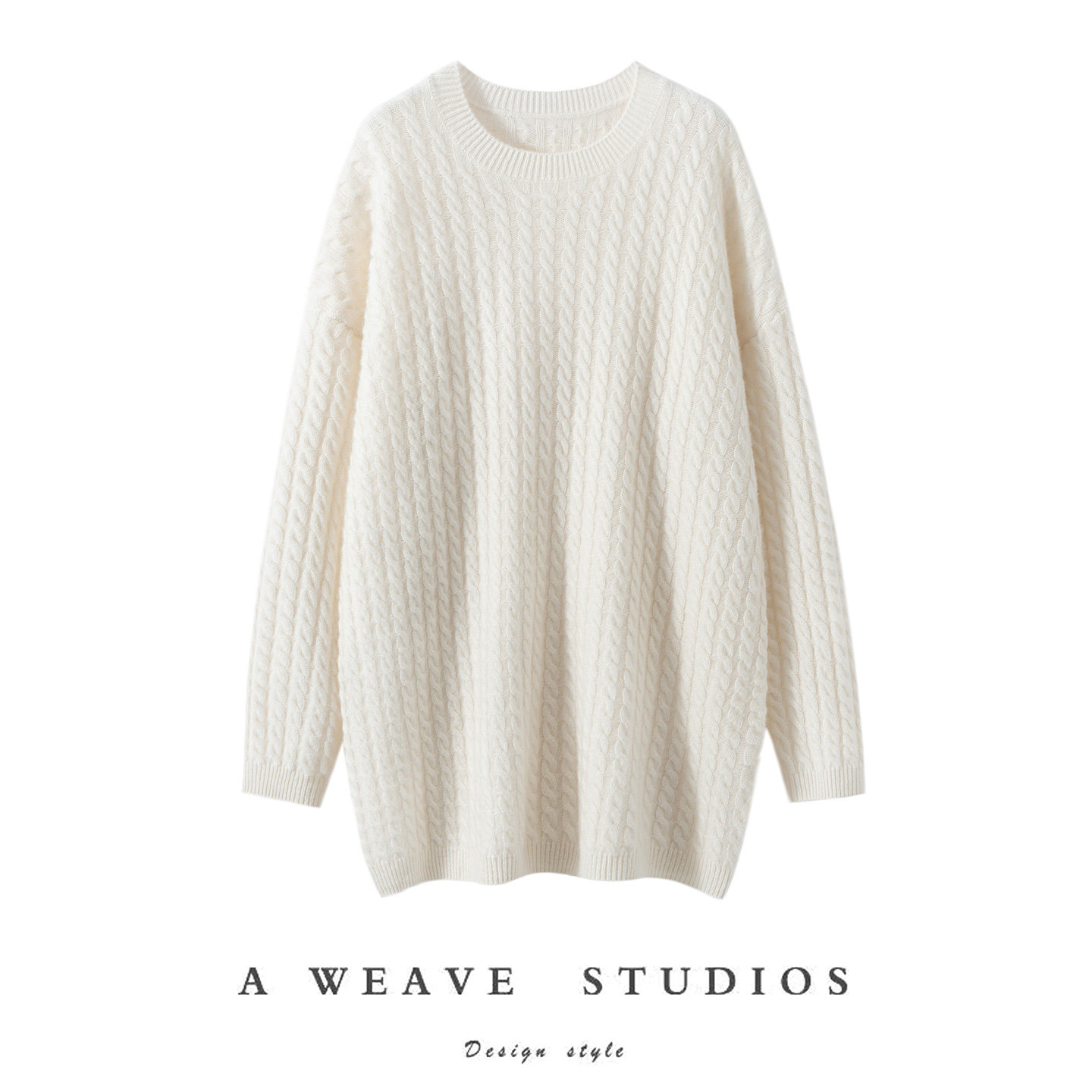 松弛风穿搭!100%纯山羊绒衫女秋冬款圆领中长款双股绞花宽松毛衣