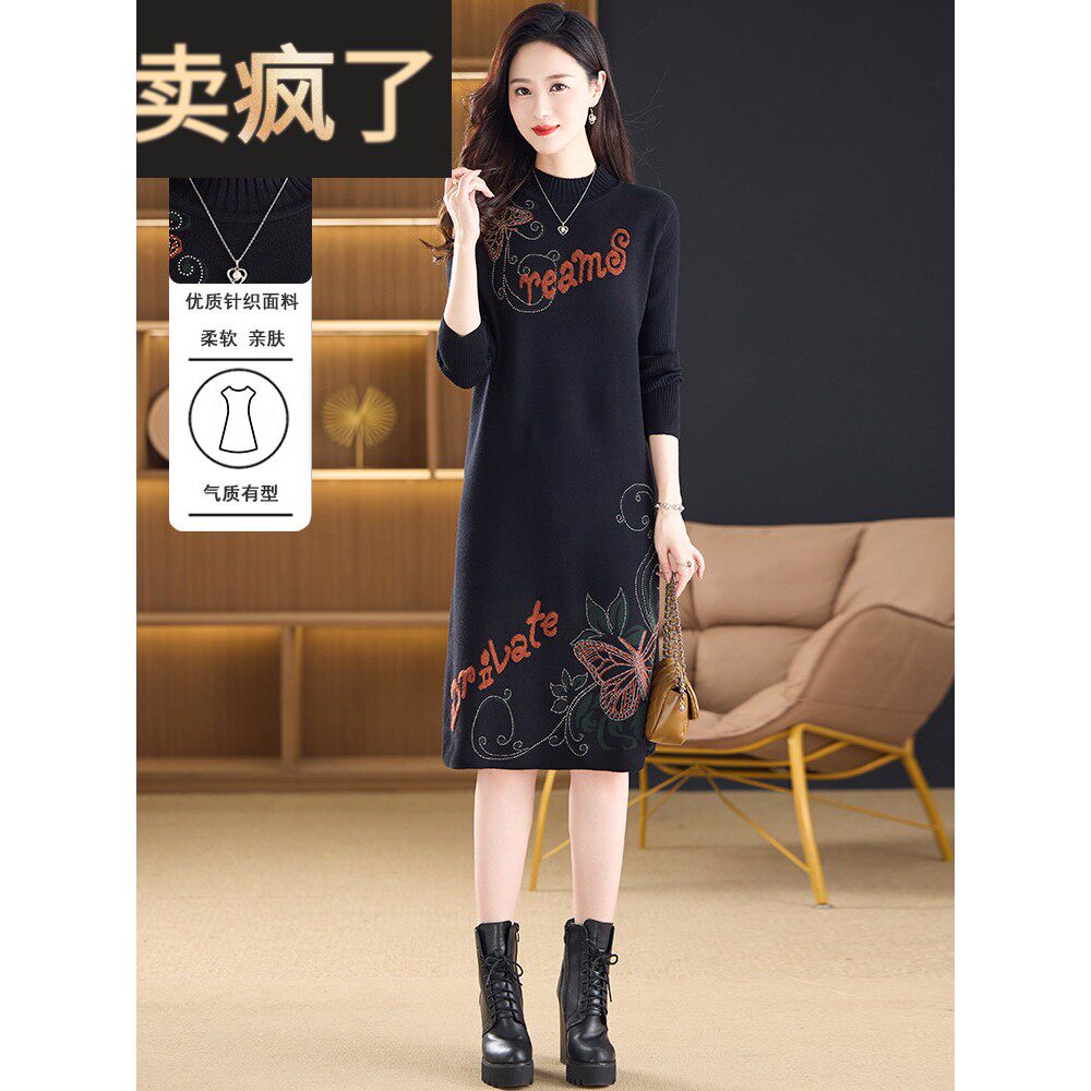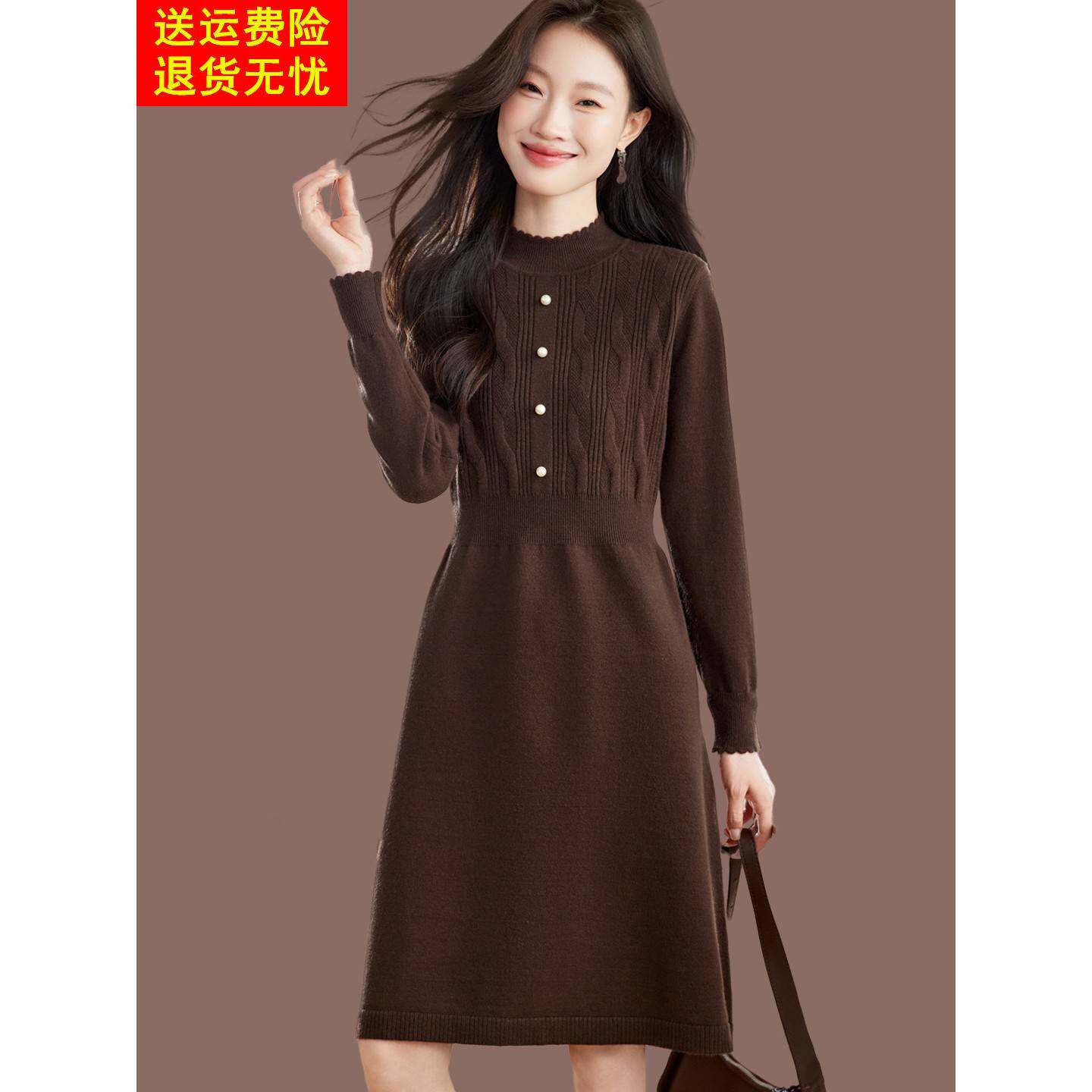 秋冬款羊毛连衣裙女长袖高档2025新款半高领针织中长款打底毛衣裙