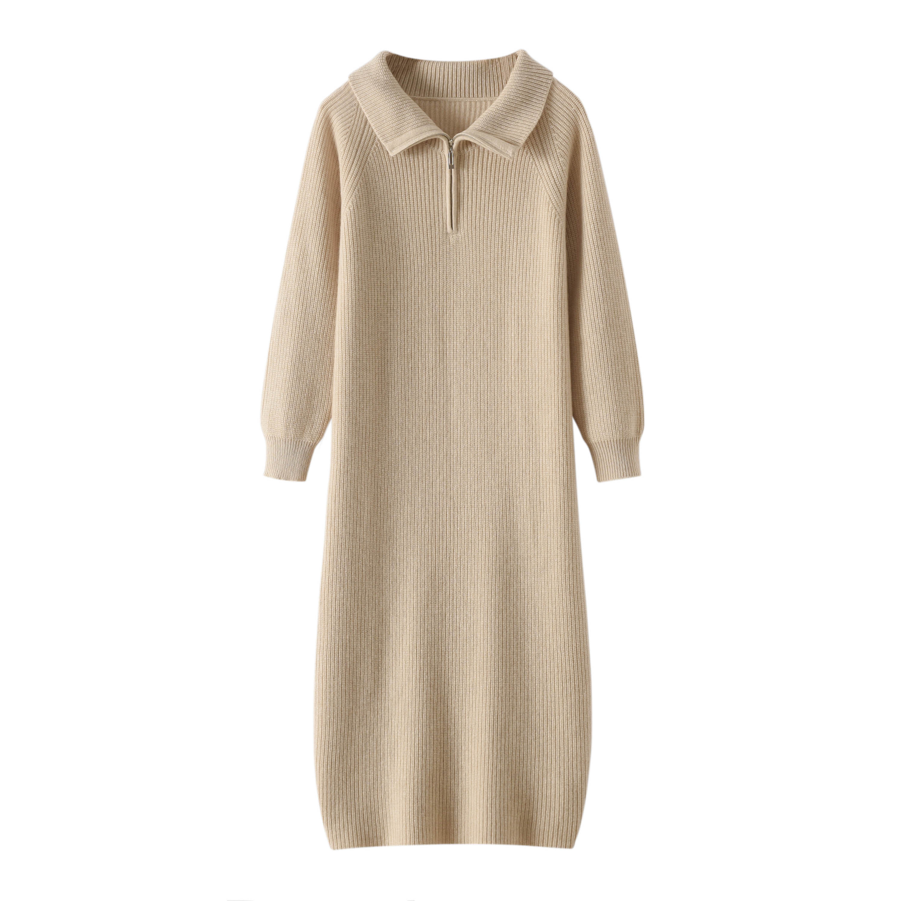 秋冬款100%羊毛衫女高领中长款过膝连衣裙抽条针织毛衣宽松羊绒衫