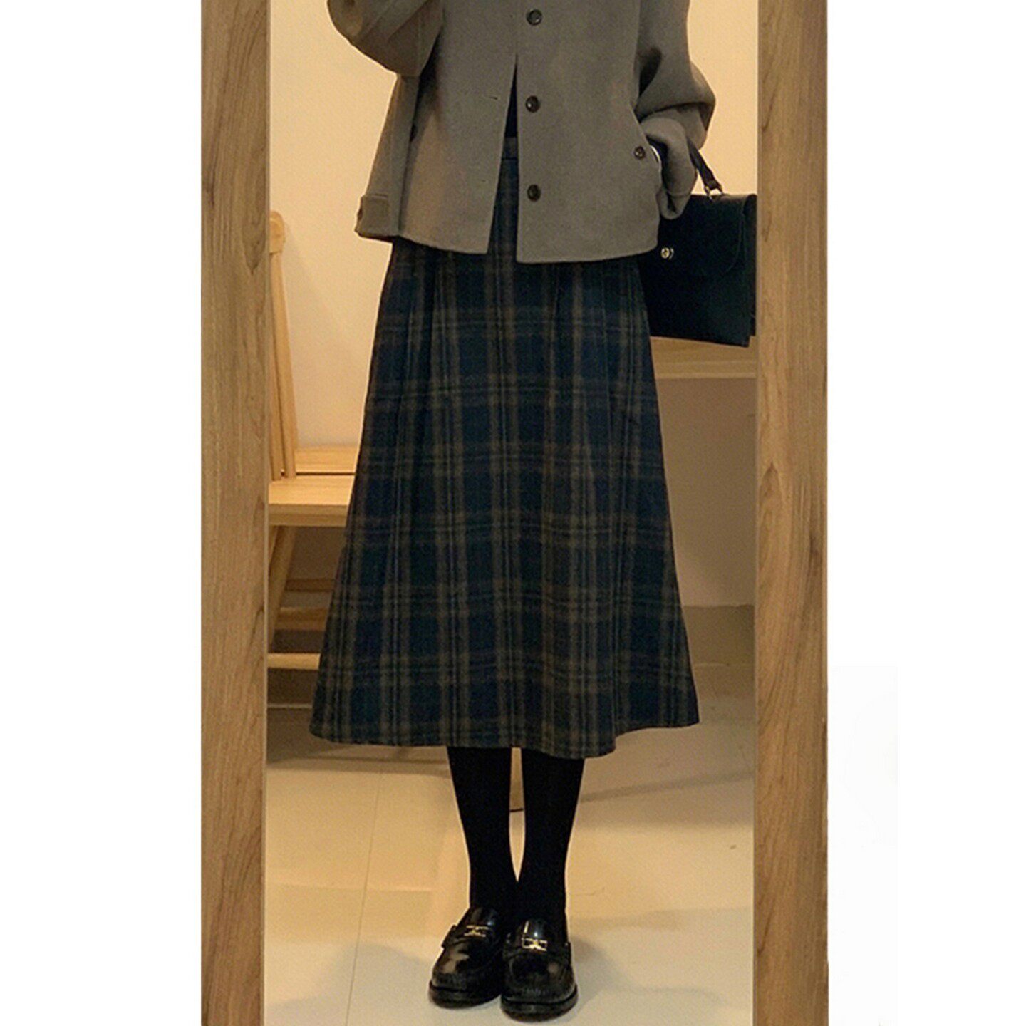复古格子毛呢a字大摆半身裙女秋冬款配毛衣高腰中长裙子半裙伞裙