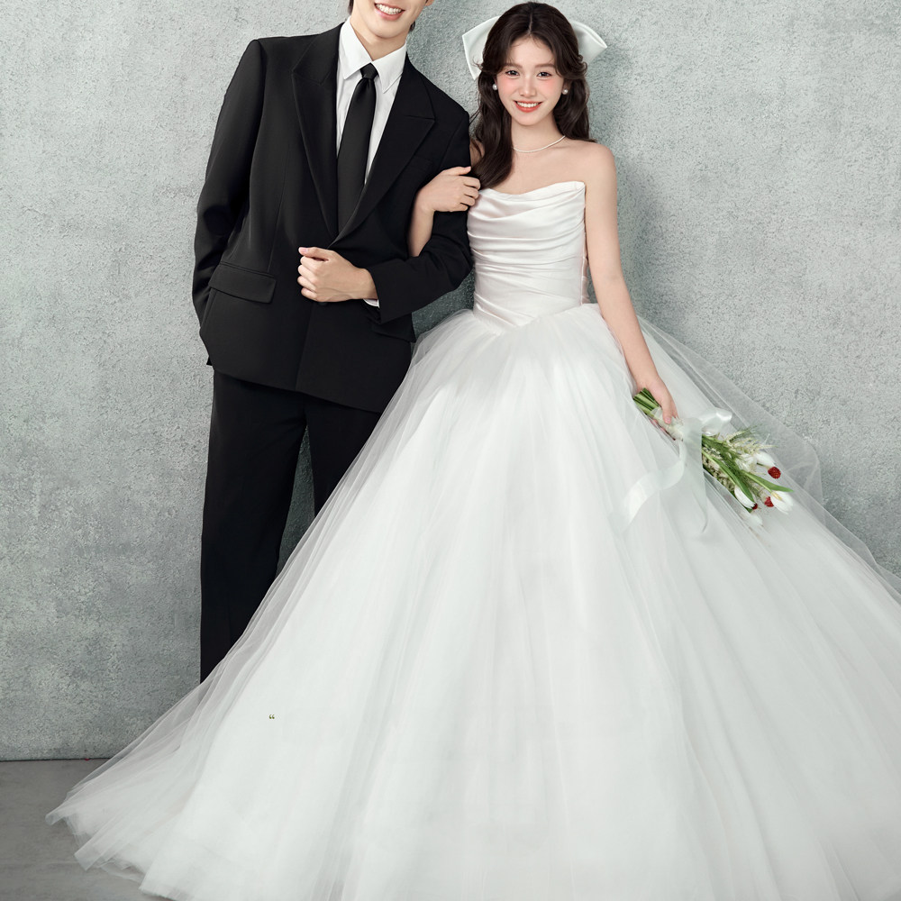 影楼主题新款婚纱2025年白色网纱抹胸高级感拖尾礼服旅拍摄影服装