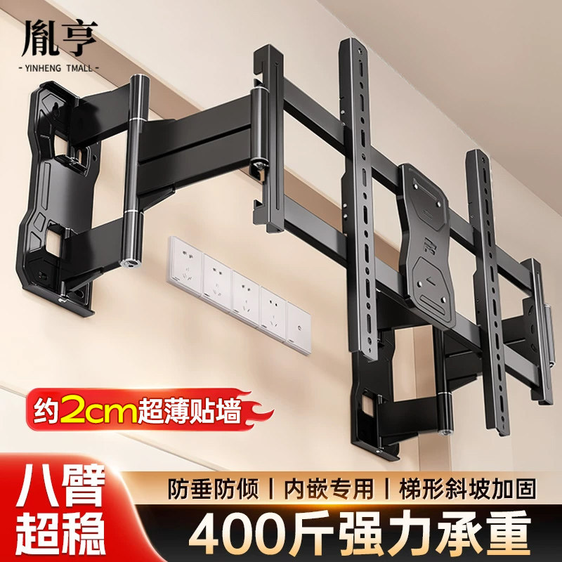 超薄电视机伸缩挂架180度旋转折叠6575/85英寸通用壁挂墙内嵌支架