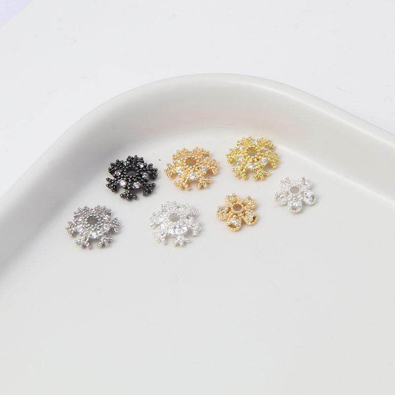 14K包金保色锆石雪花五瓣镂空花托diy饰品配件珠托帽手工手链串珠
