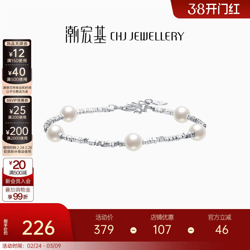潮宏基闪耀银河s925银仿珍珠手链碎银子几两ins风xhs妇女节礼物 J