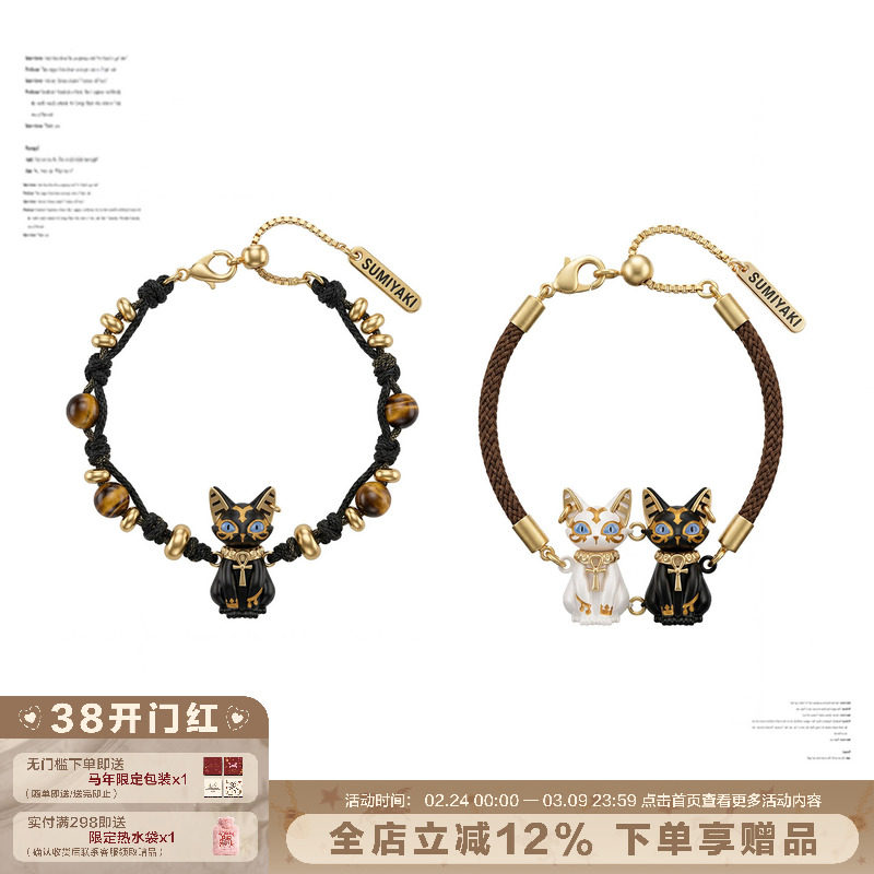 SUMIYAKI 法老埃及猫系列黑白猫咪安卡编绳手环虎眼石串珠手链女