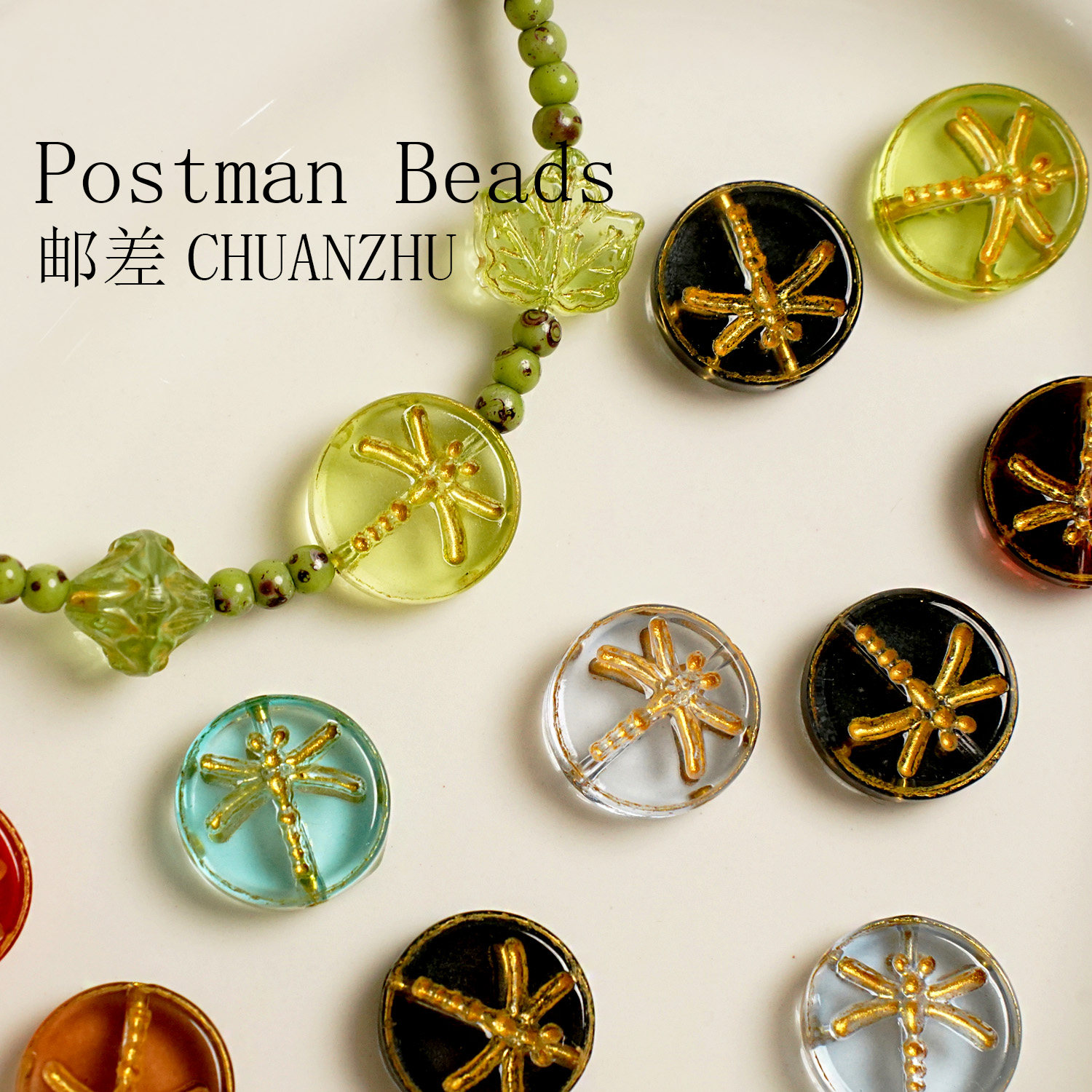 布拉格捷克描金蜻蜓琉璃配件手工串珠项链手链耳环DIY配件材料