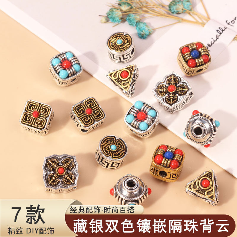 藏银双色镶嵌隔珠背云 diy手作饰品手串项链配件古金回纹保色散珠