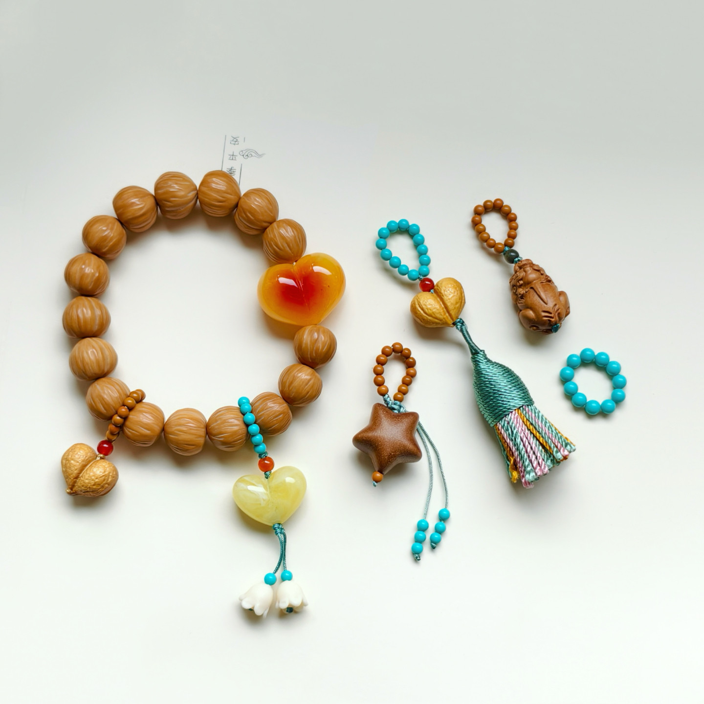 手工编织屁桃小提溜象牙果猴头手串diy菩提配件文玩串珠隔珠配饰