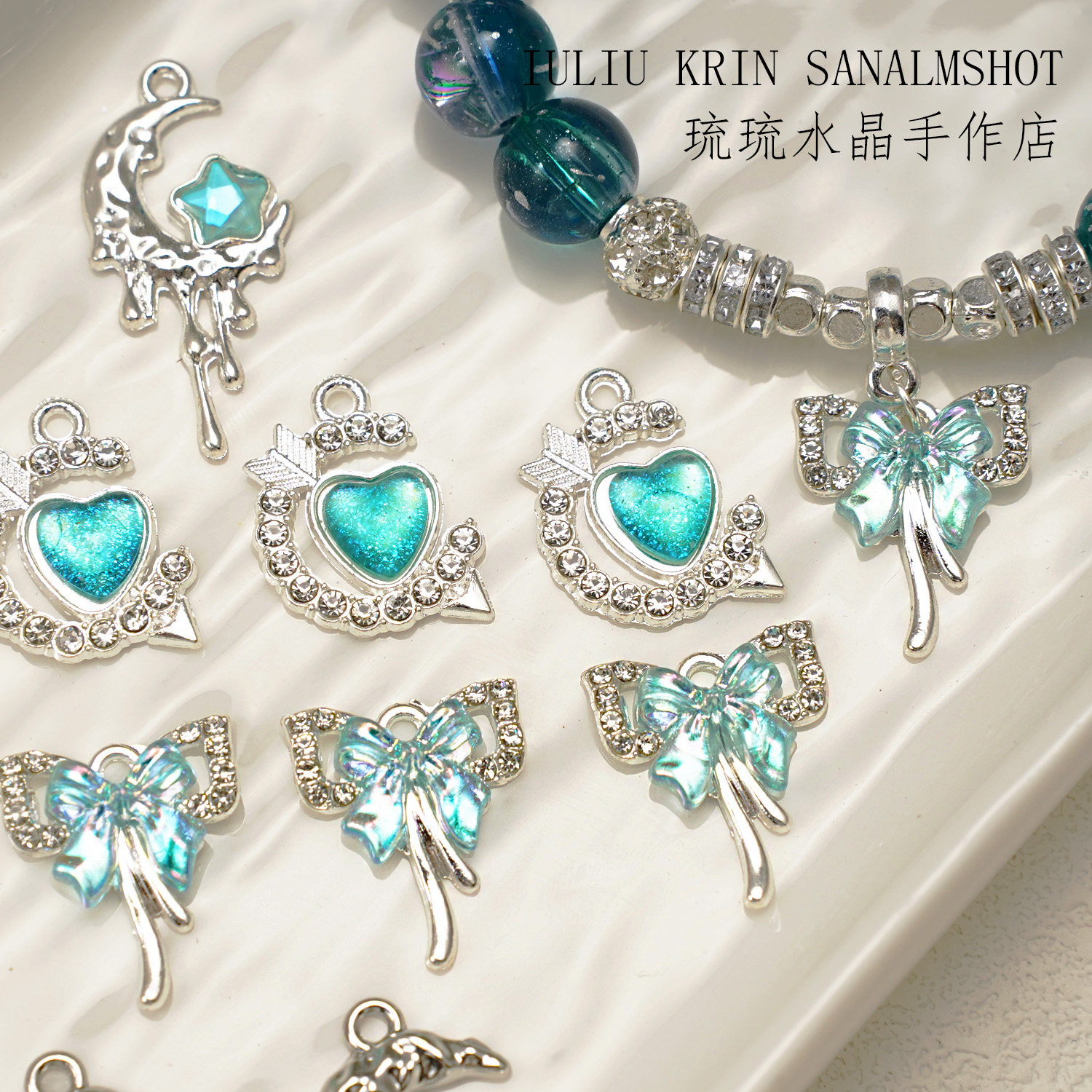 DIY幻彩羽毛爱心亮银配件串珠材料手链项链吊坠配件饰品散珠隔珠