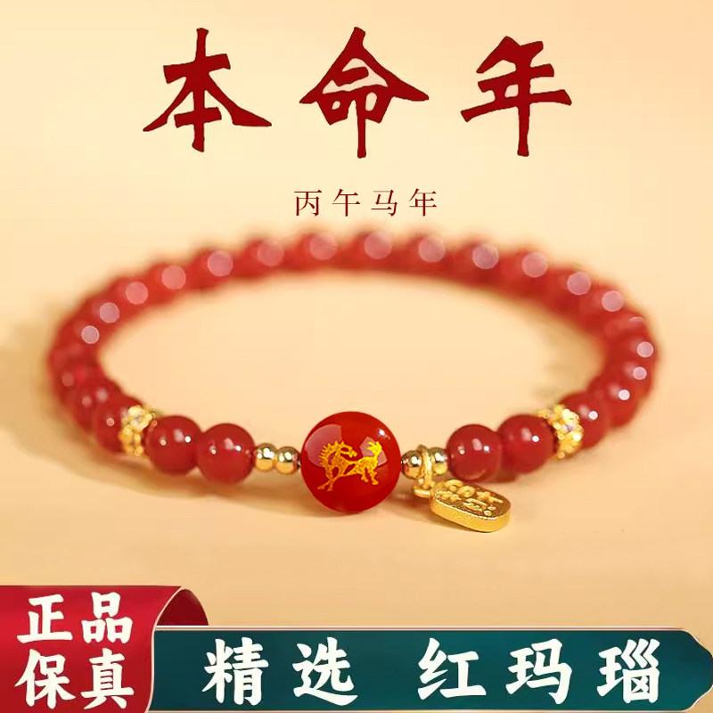 2026马年本命年红玛瑙手串女十二生肖转运珠手链男红色吉祥佩戴物