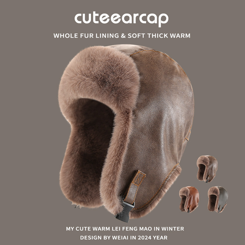 冬季皮帽子保暖雷锋帽男韩版加厚防风骑车帽子户外防寒东北滑雪帽
