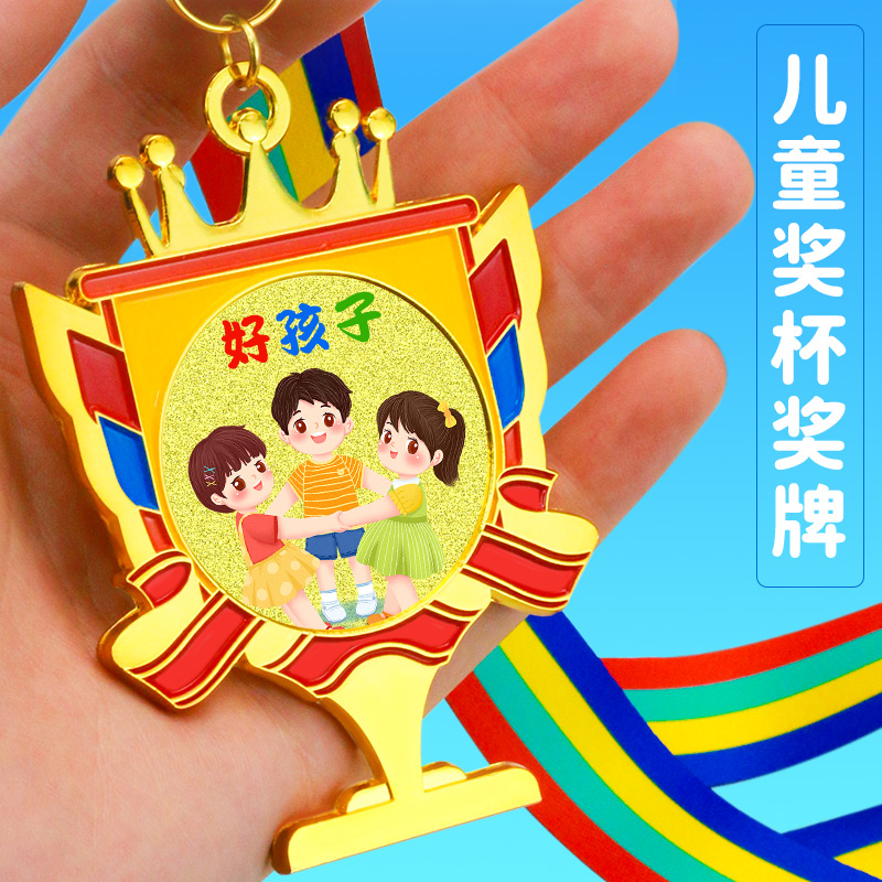 儿童奖杯奖牌定制幼儿园小朋友奖励挂牌定做好孩子运动会进步之星