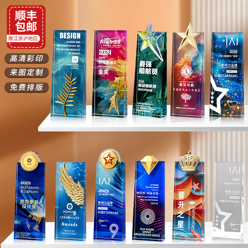 水晶彩印奖杯奖牌创意定制公司年会颁奖活动奖品免费刻字厂家直销