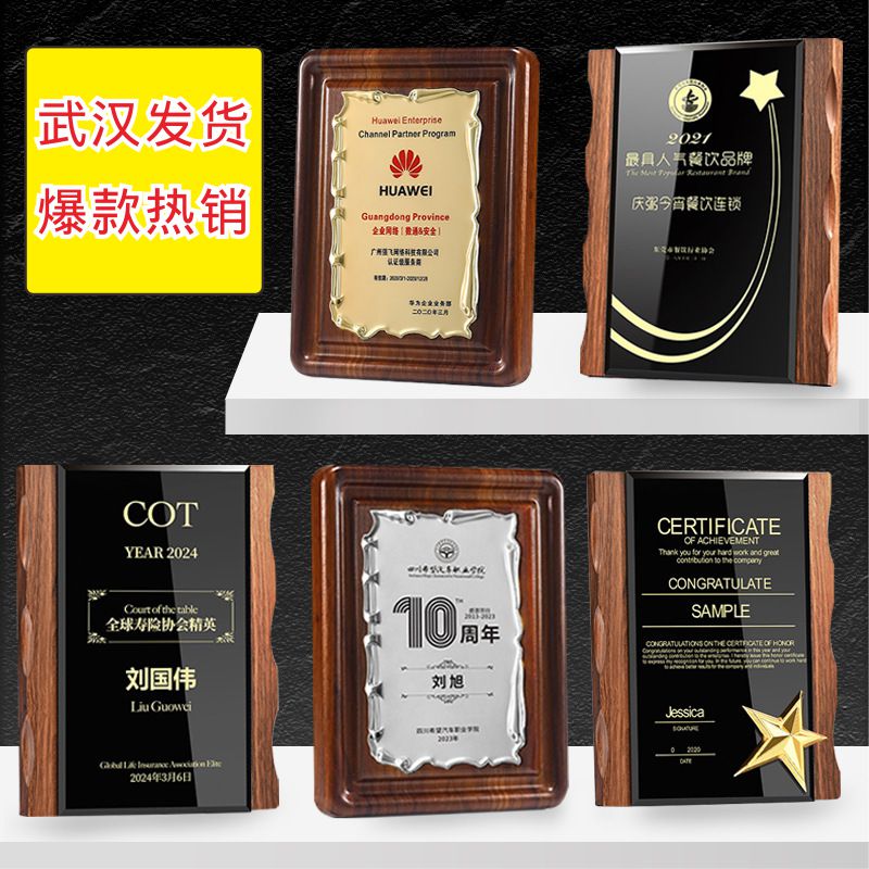 金箔奖牌授权牌荣誉牌匾木托铜牌木质证书代理颁奖牌定制定做奖杯