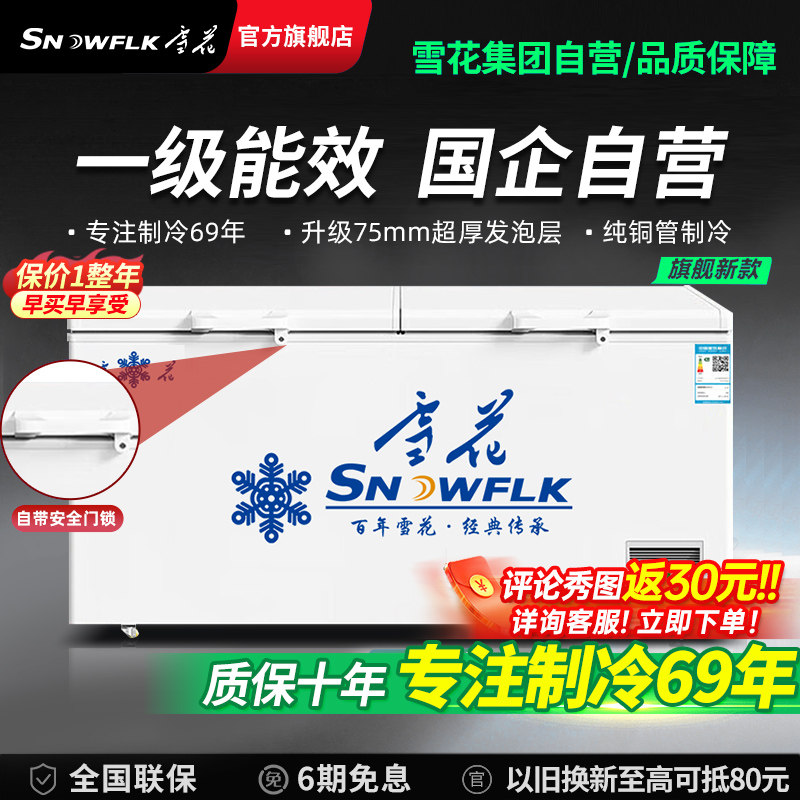 【国企旗舰自营】雪花卧式冰柜商用冷冻柜大容量冷藏冷冻商用冷柜