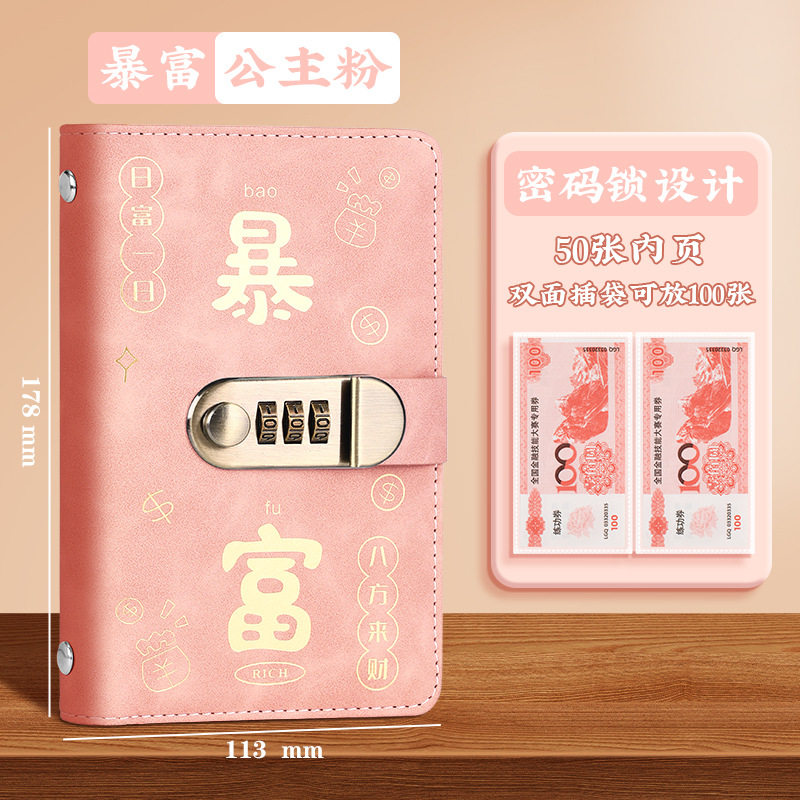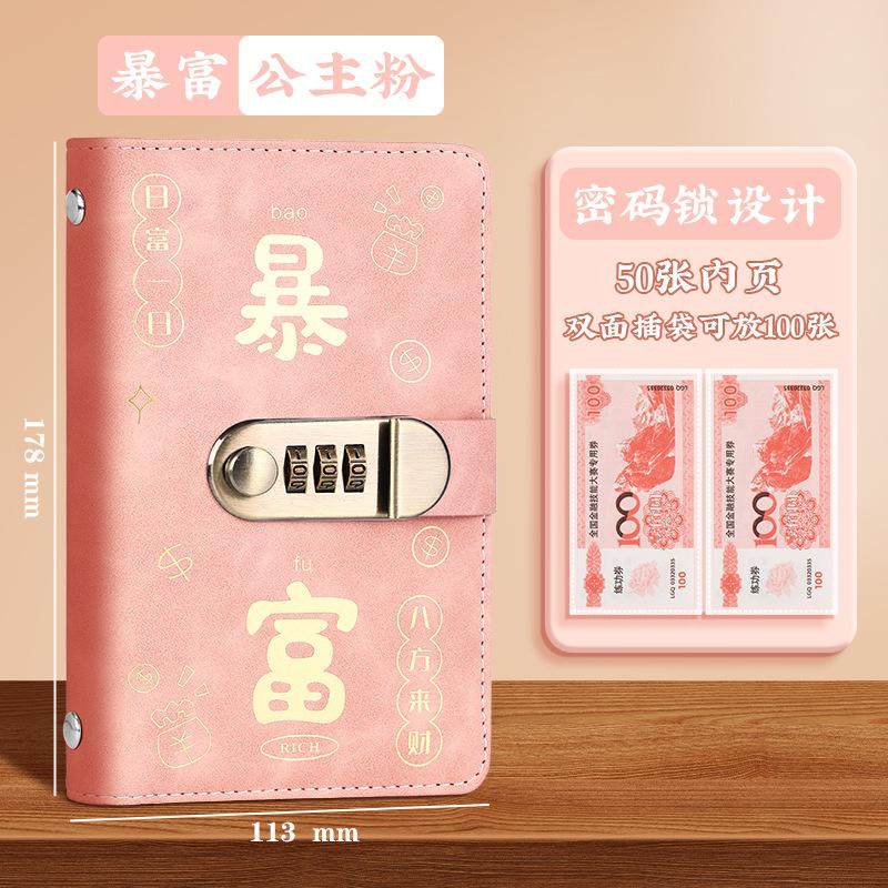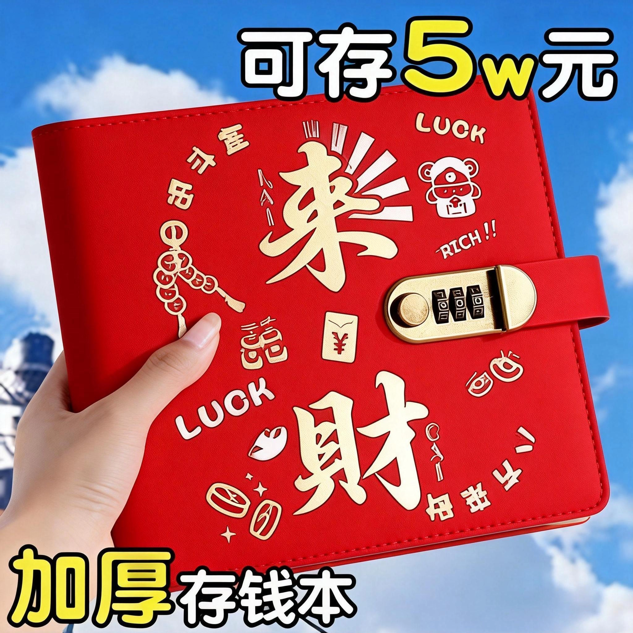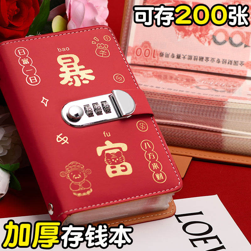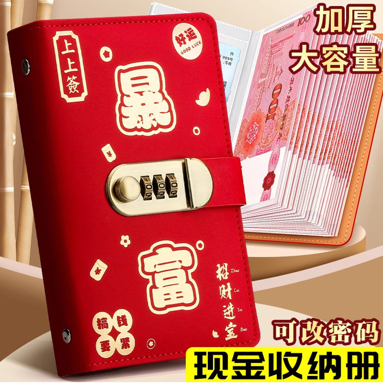 暴富存钱夹钱册2025年新款密码锁现金存钱本收纳册儿童攒钱笔记本人民币纸币钱币收藏册百元钞票书放现金2026