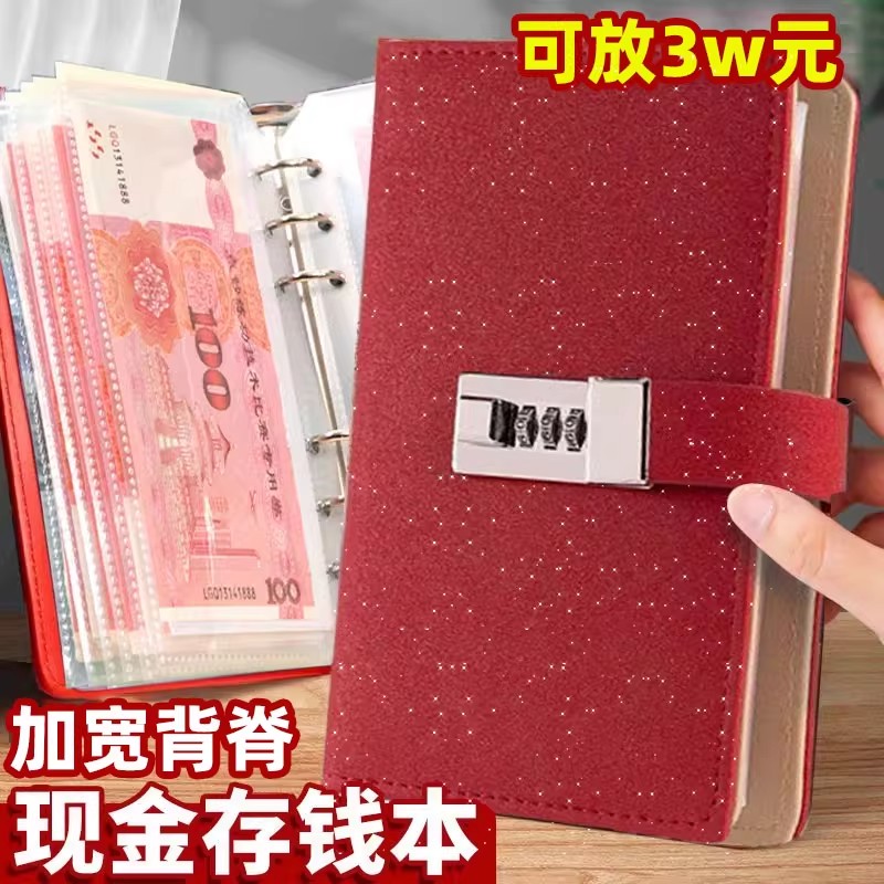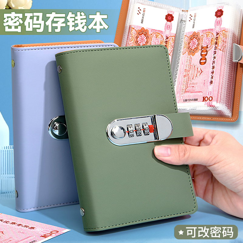 新款密码锁现金存钱本暴富收纳册只放钱10万元存钱夹钱册收藏册存钱袋儿童理财百元钞票人民币纸币收纳神器