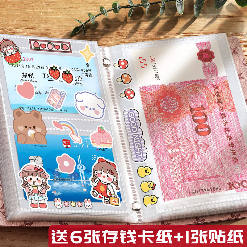 2026新款现金存钱本票据夹存钱夹钱册纸币收藏册人民币收纳册大容量儿童纸币存钱袋网红理财收纳包A6存2万元