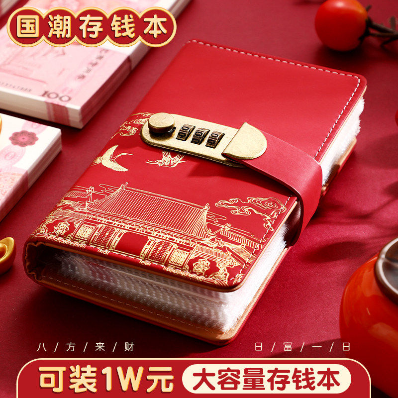 国潮风存钱夹钱册现金存钱本2026年新款理财神器收纳册人民币纸币收藏册可放现金存放袋大容量10万元收纳本