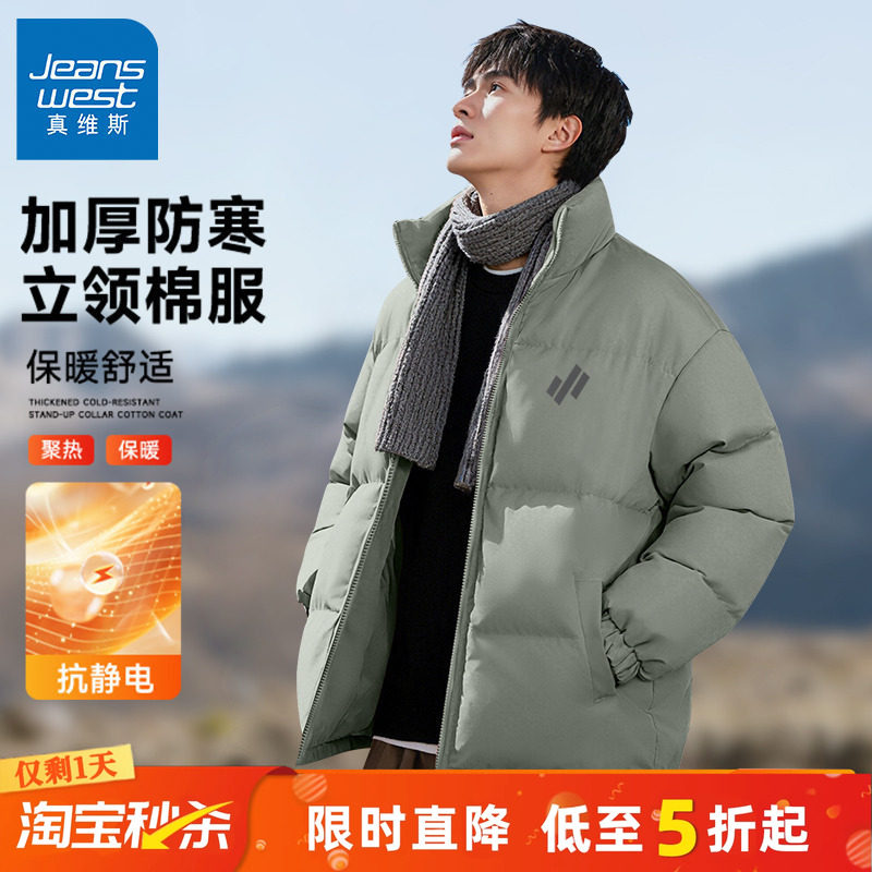 GV真维斯立领棉服男款冬季加厚保暖防风外套男士抗静电宽松棉袄A