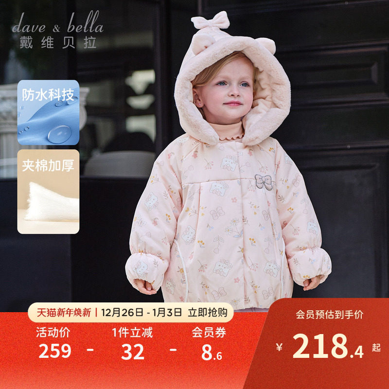 戴维贝拉儿童防水棉服2025女童新款连帽棉衣女宝A类冬装棉袄外套