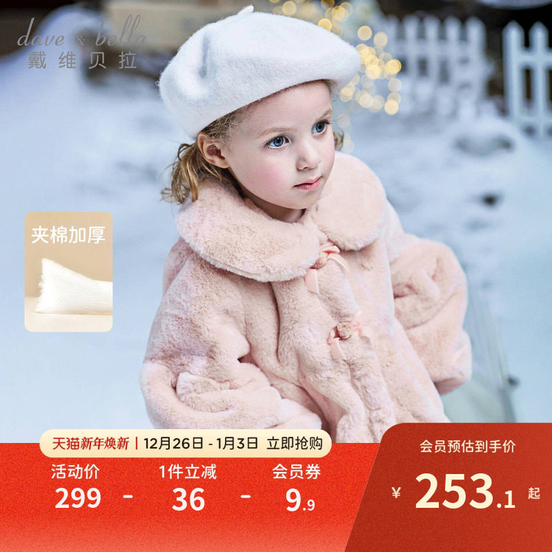 戴维贝拉儿童毛绒棉服2025秋冬新款仿兔毛棉衣外套女童棉袄A类