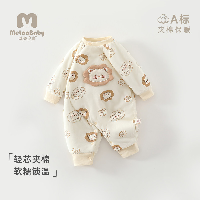 婴儿夹棉连体衣秋冬款男女宝宝纯棉A类薄棉衣服棉服哈衣爬服家居