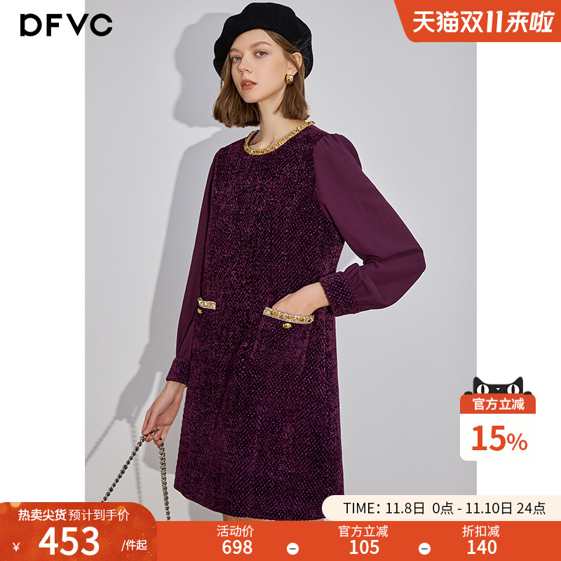 dfvc安可拉红名媛小香风连衣裙女2025年秋季新款钉珠小个子A字裙