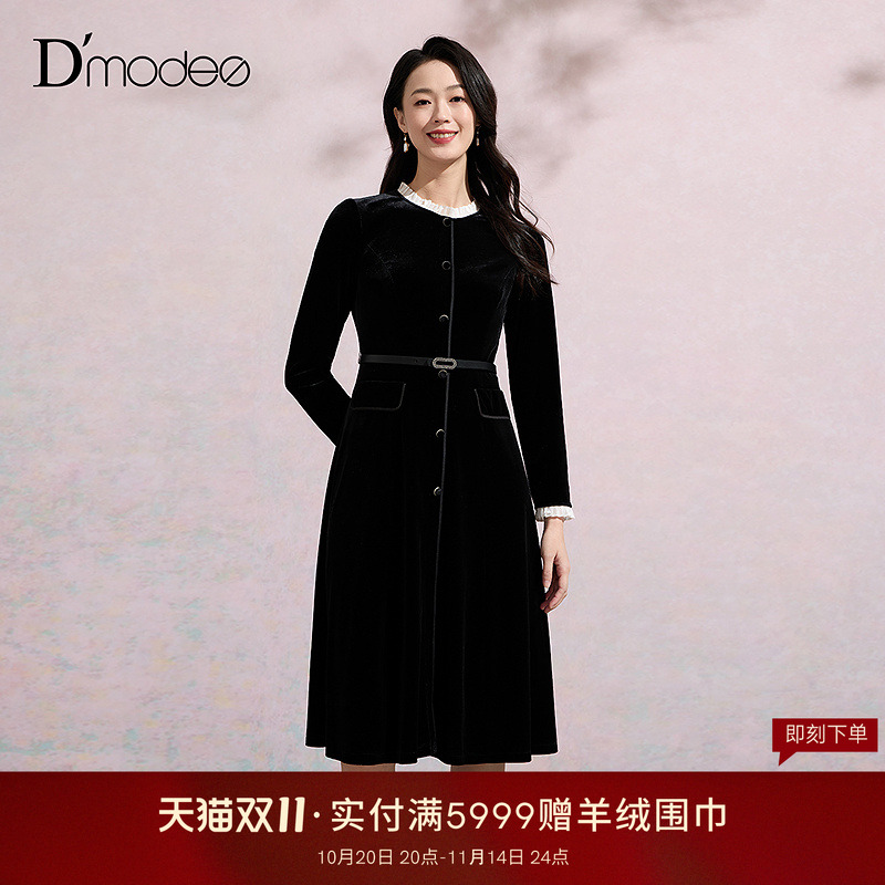 黛玛诗赫本风丝绒小黑裙2025秋季新款名媛小香风连衣裙女气质收腰