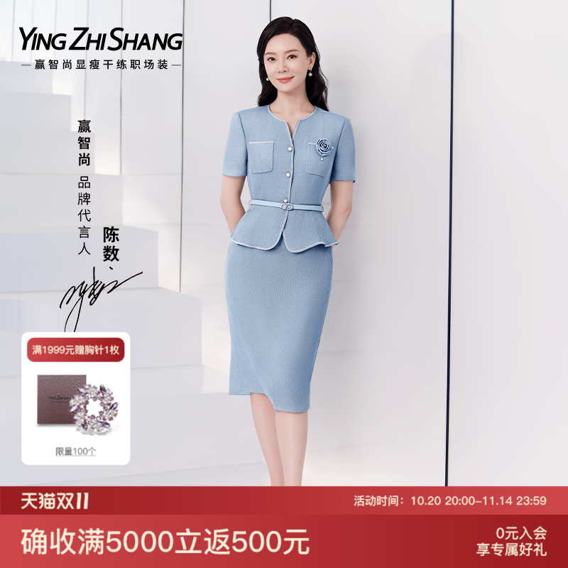 菲梦伊原创蓝色小香风连衣裙女秋季高品质名媛贵气收腰职业包臀裙
