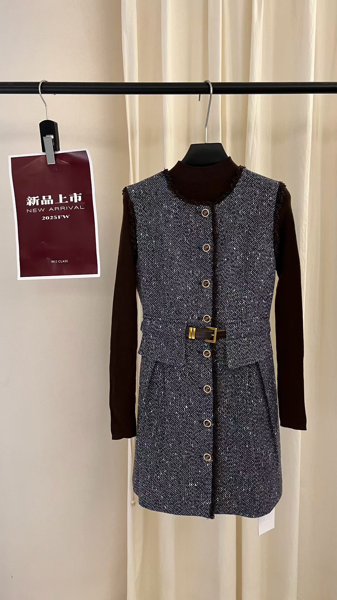 【现货】欧货25秋新款名媛小香风连衣裙套装气质羊毛针织内搭套装