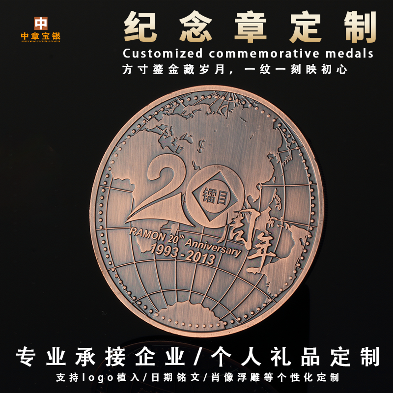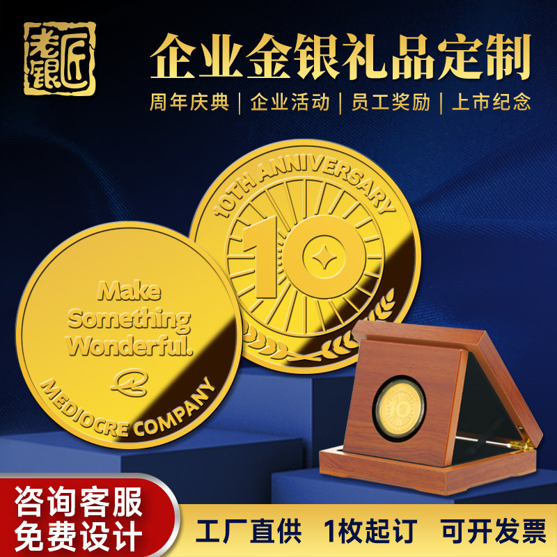 周年纪念银币定制999纪念章定做金牌上市庆典礼品退休银币订制